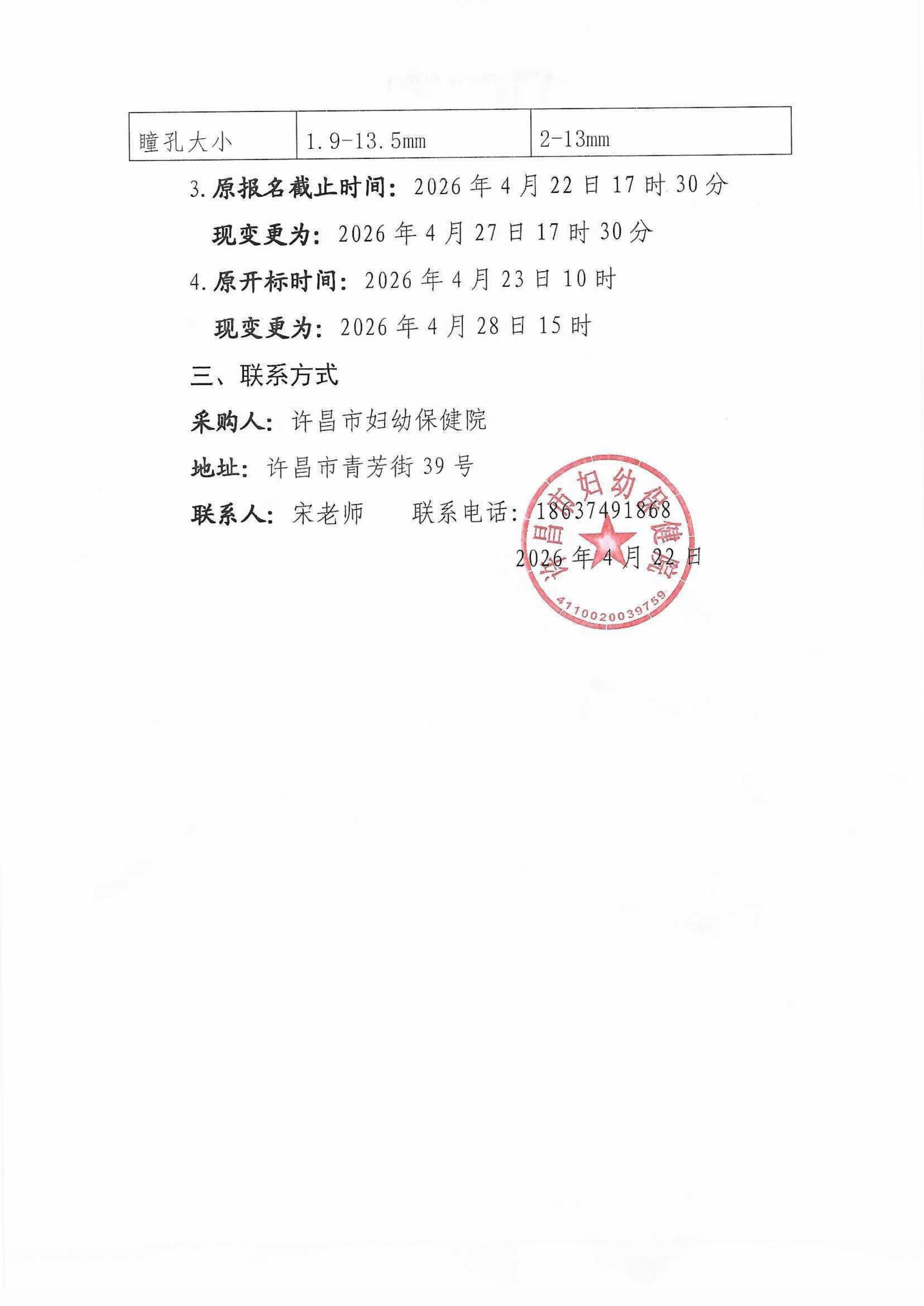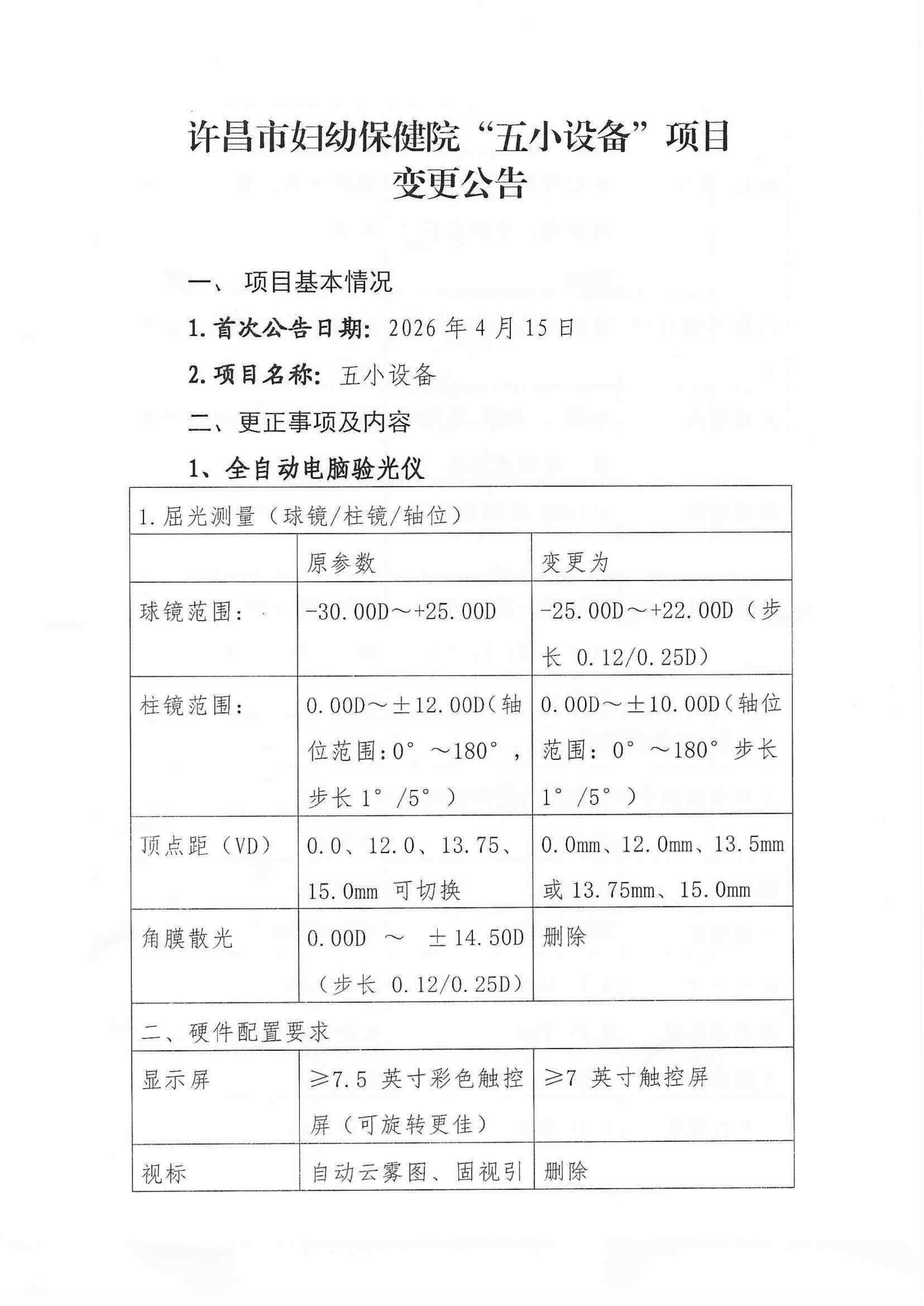 许昌市妇幼保健院“五小设备”项目变更公告