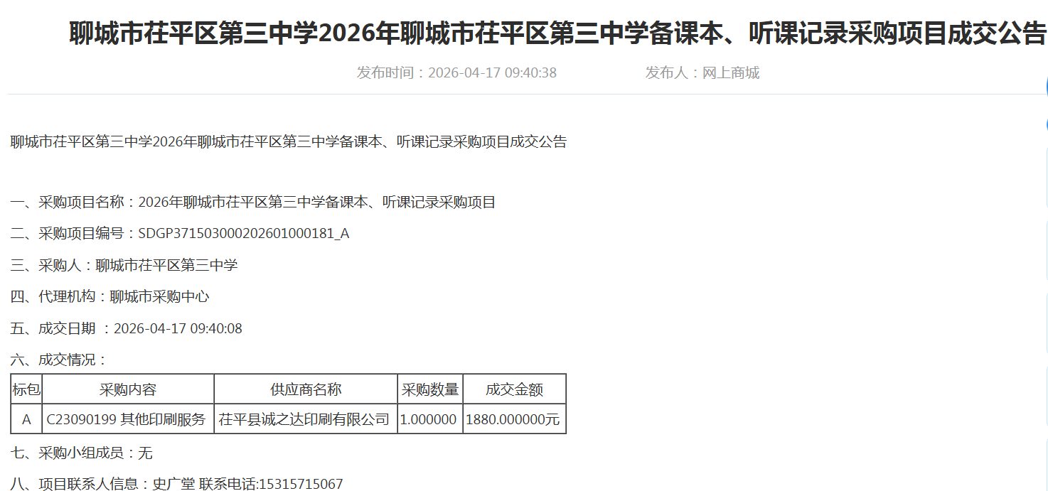 茌平三中2026年采购信息