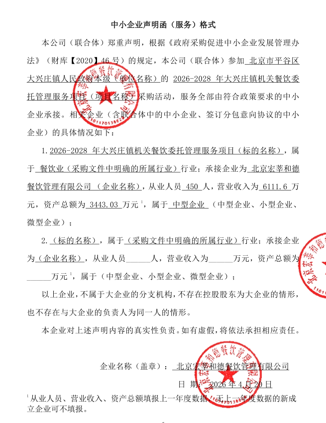 | 北京宏莘和德餐饮管理有限公司 | * | ***.******万元 | ***.******万元 | 详见采购文件 |