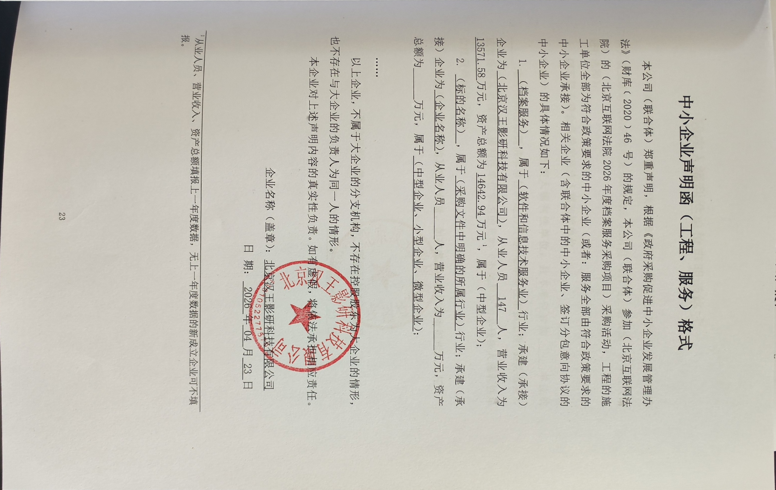 [磋商]北京互联网法院2026年度档案服务采购项目成交结果公告