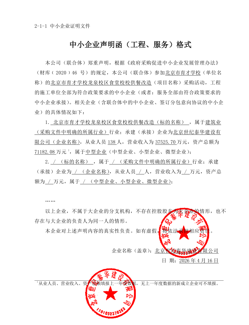 中标成交供应商名称:北京世纪泰华建设有限公司