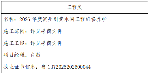 2026年度滨州引黄水闸工程维修养护成交结果公告