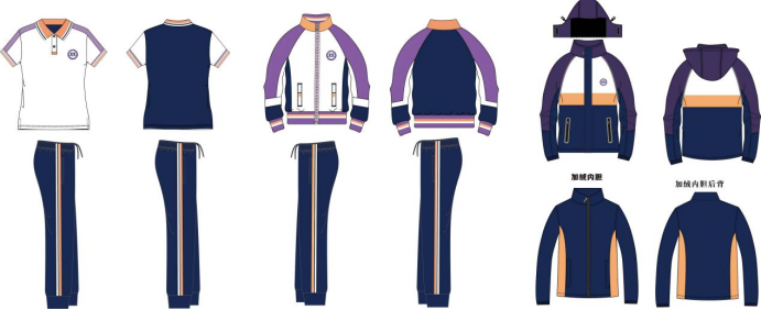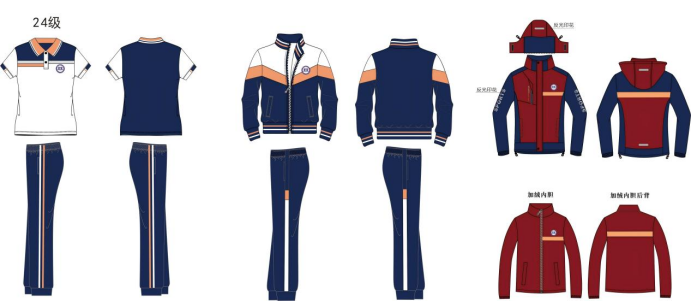 *.符合“一校一款”原则:与我校****级校服设计布局保持一致,通过色彩区分不同年级。