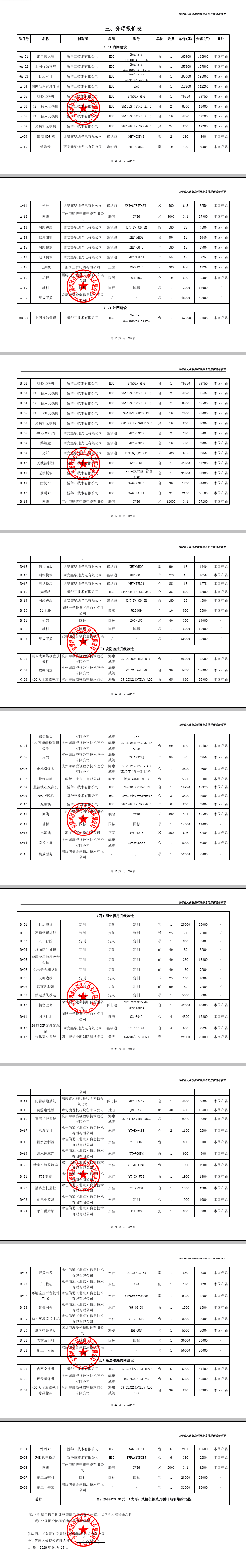 | * | 网络信息化升级改造项目 | *.**** | 中标(成交)供应商 |