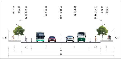 项目位于田家庵区,主要建设内容为淮耕路(纺织厂路*国庆路)段及相关配套设施,同步对该段龙王沟排涝通道进行提标改造。淮耕路(纺织厂路*国庆路)设计全长约*.**千米,道路红线宽度**米,设计时速**公里/小时,横断面形式采用:(人行道*米+非机动车道*.*米+机动车道*米)×*=**米。龙王沟(纺织厂路*国庆路)段采用钢筋混凝土箱涵结构,布置于淮耕路道路下方,全长约***米。