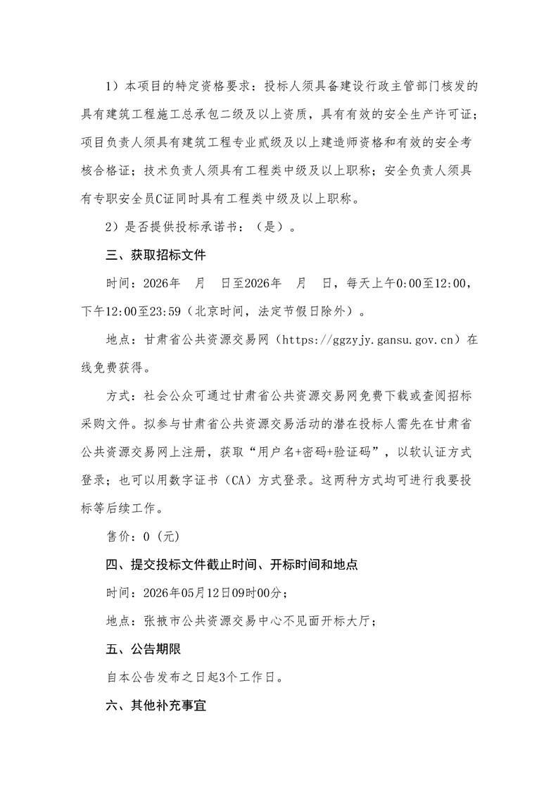 甘肃/张掖 招标采购